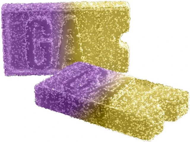 Two-pack of passionfruit-mango flavoured soft chews with a 1:1 THC:CBG ratio.